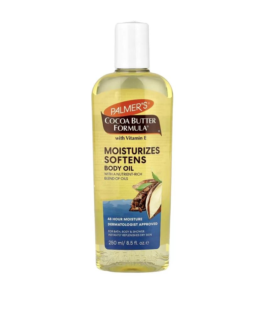 استمتع بترطيب البشرة ونعومتها مع زيت الجسم Cocoa Butter Formula® من Palmer's®، المصنوع من زبدة الكاكاو المرطبة بشكل مكثف وفيتامين هـ.